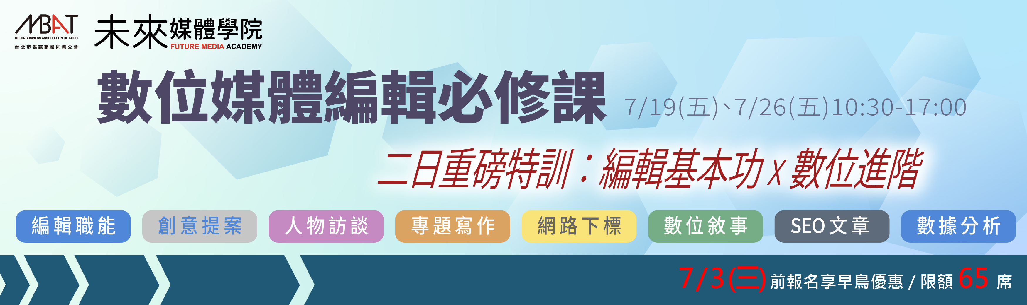 專業媒體編輯養成:內化編輯力 x 提升數位競爭力