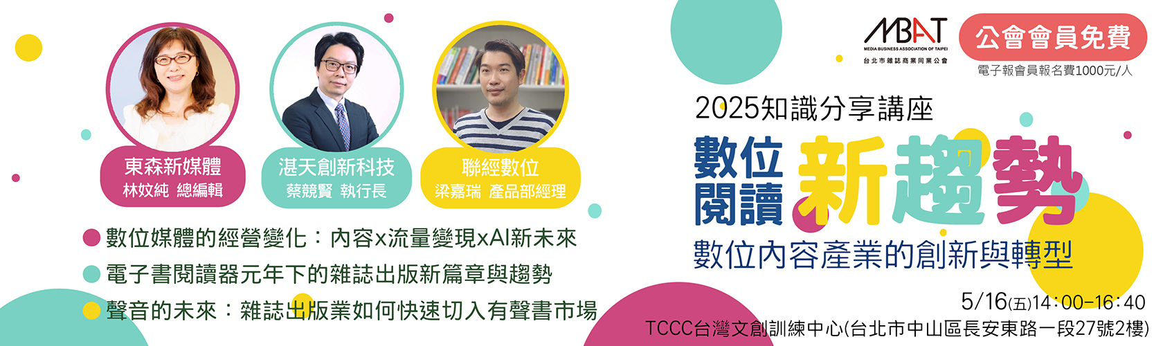 【會員免費】如何快速切入有聲書市場、電子書閱讀器在雜誌出版營收增加的應用。報名至5月12日!