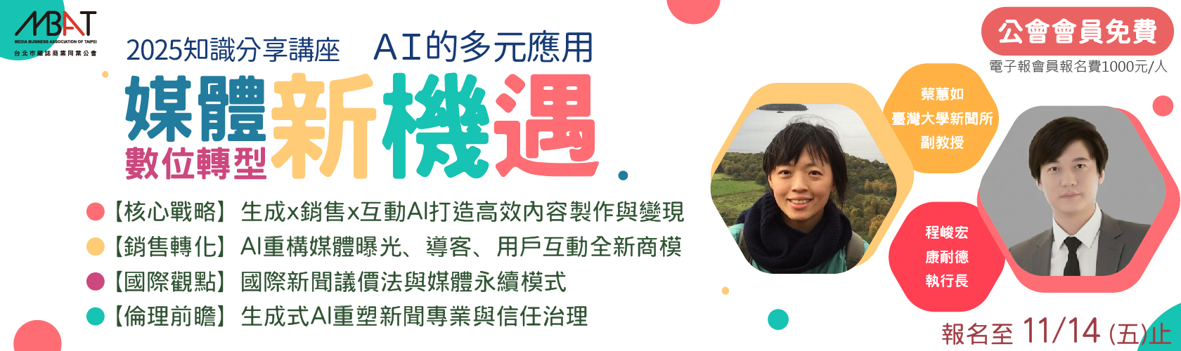 【免費講座報名最終日】從國際經驗端看新聞媒體面對AI的挑戰與生成×銷售×互動AI工具打造高效內容變現
